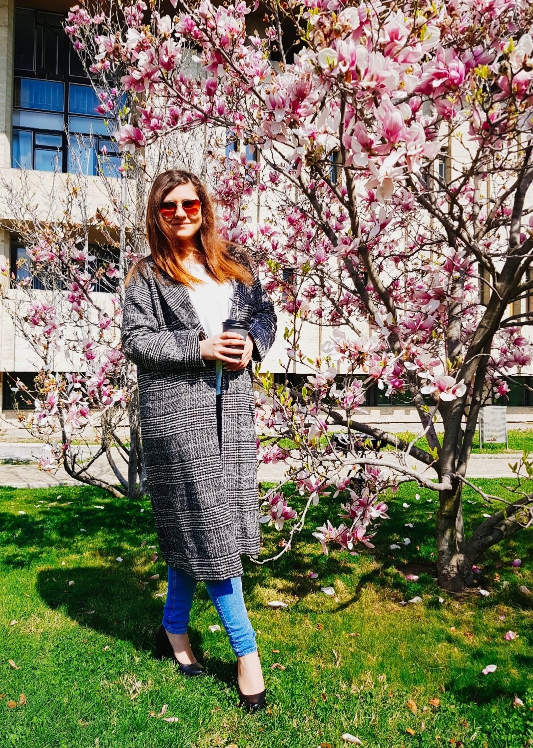 Astăzi port pantofi cu toc și mi-am îndreptat părul. Orașul este aglomerat, iar oamenii își trăiesc viața pe repede-înainte, n-având timp să se bucure de flori, de păsări sau de cerul albastru. O urmă fină de primăvară se strecoară printre copaci. Astăzi sunt mult mai atentă la tot ce mă înconjoară.