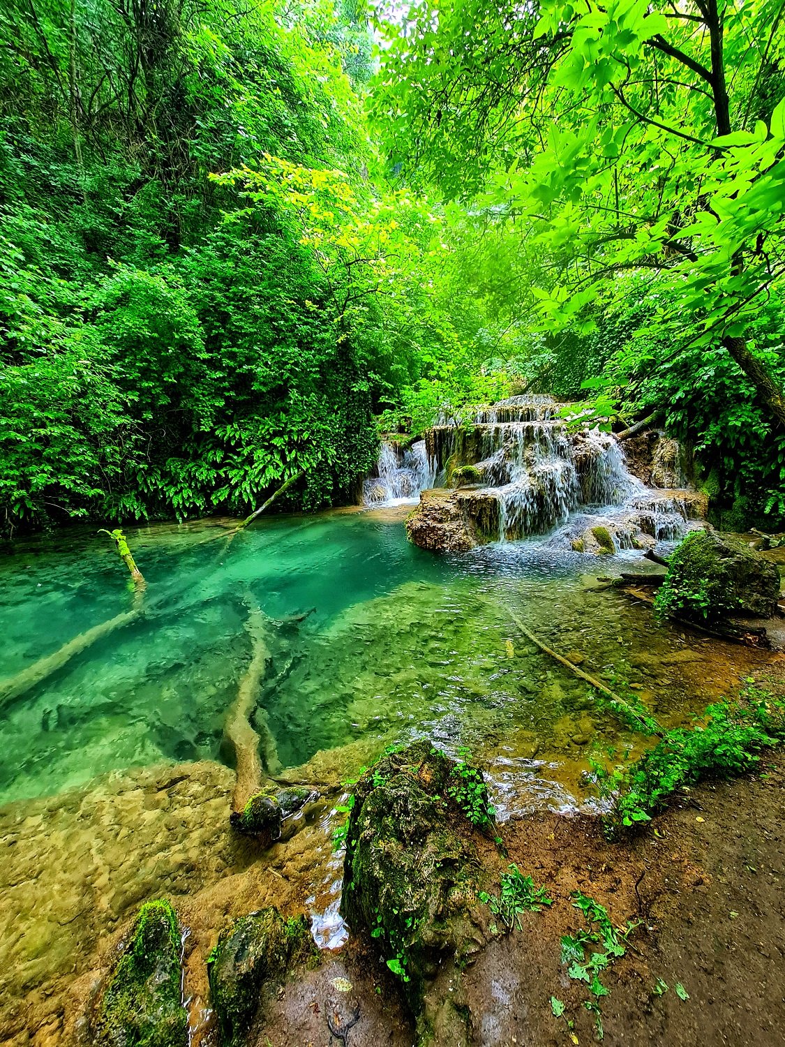 Krushuna este cea mai mare cascadă de traventin din Bulgaria, situată în Parcul Național Krushuna (sau Maarata) ce se întinde pe o suprafață de 6 hectare. Cascada este formată din numeroase terase rotunde și bazine naturale cu apă minerală, de o frumusețe ireală. Timp de 2 ore, ne-am plimbat pe mai multe trasee din parc, pe o ploaie caldă de vară. După ce am admirat Piscina Albastră și cascada înaltă de 20 m, am urcat prin pădure, prin bălți și nămol, până am ajuns în vârful muntelui, la peștera din care izvorăște râul cu pricina. Înainte de a ajunge la pesteră, a revenit ploaia și ne-am adăpostit sub stânci. Încep să cred că laitmotivul acestei vacanțe a fost ploaia.